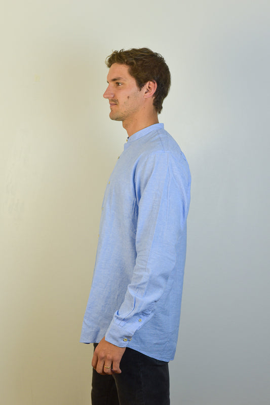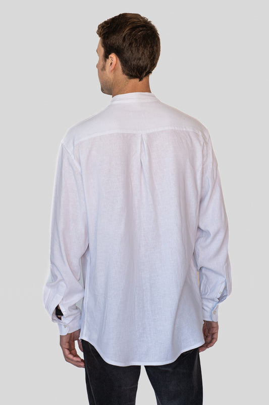Camisa Lino Niza Cuello Mao Verde Olivo