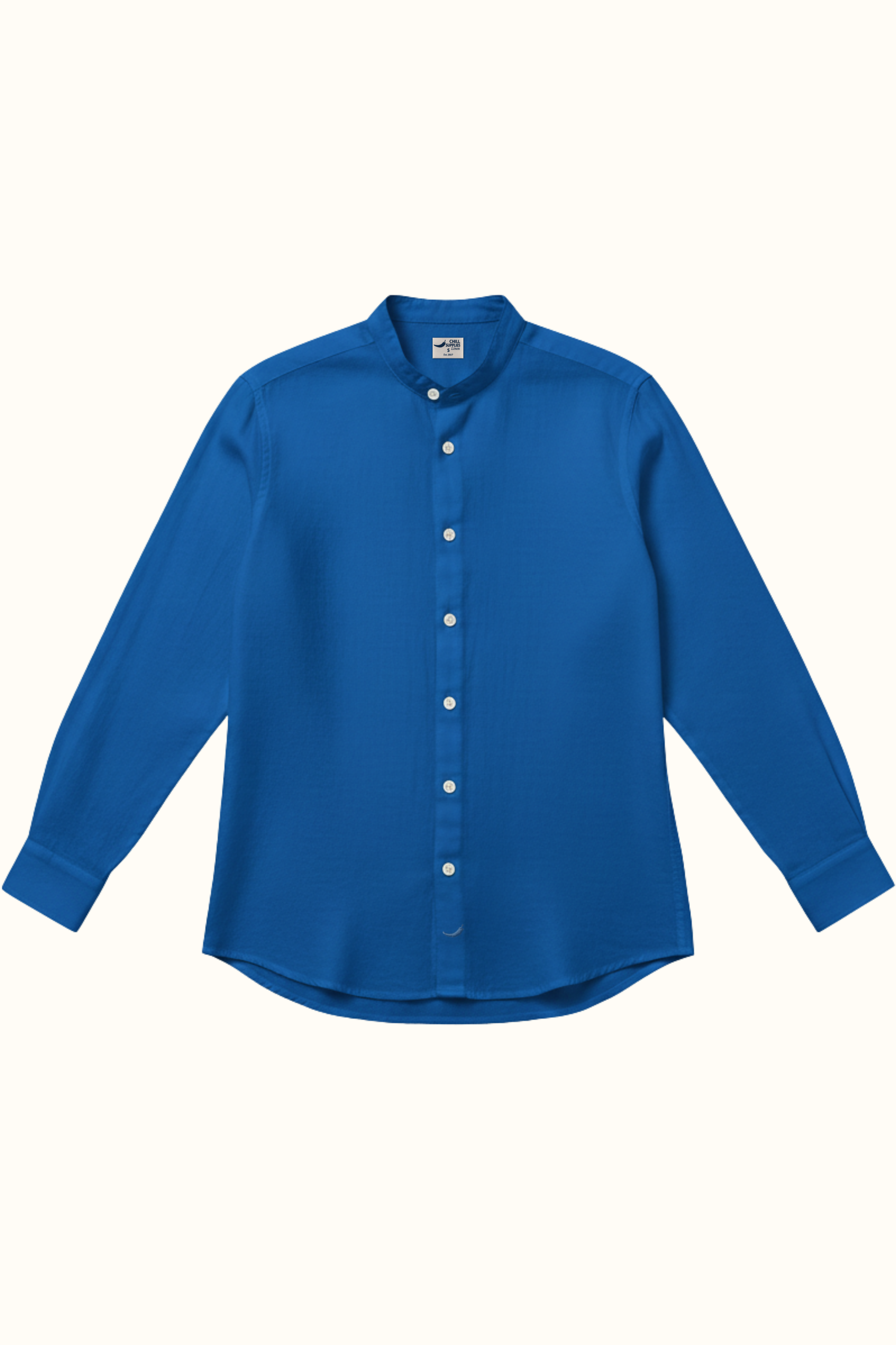 Camisa Lino Niza Cuello Mao Azul Cobalto