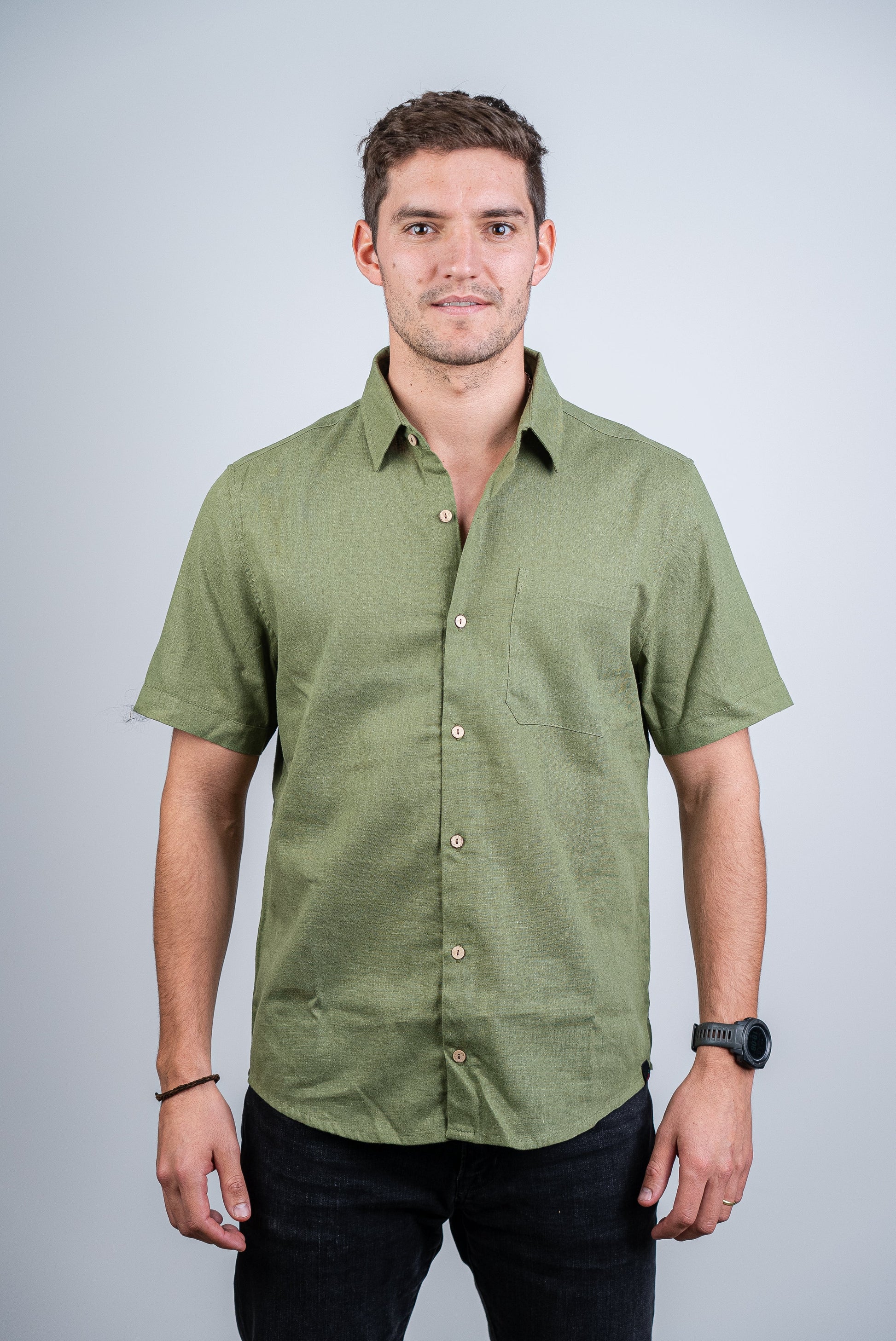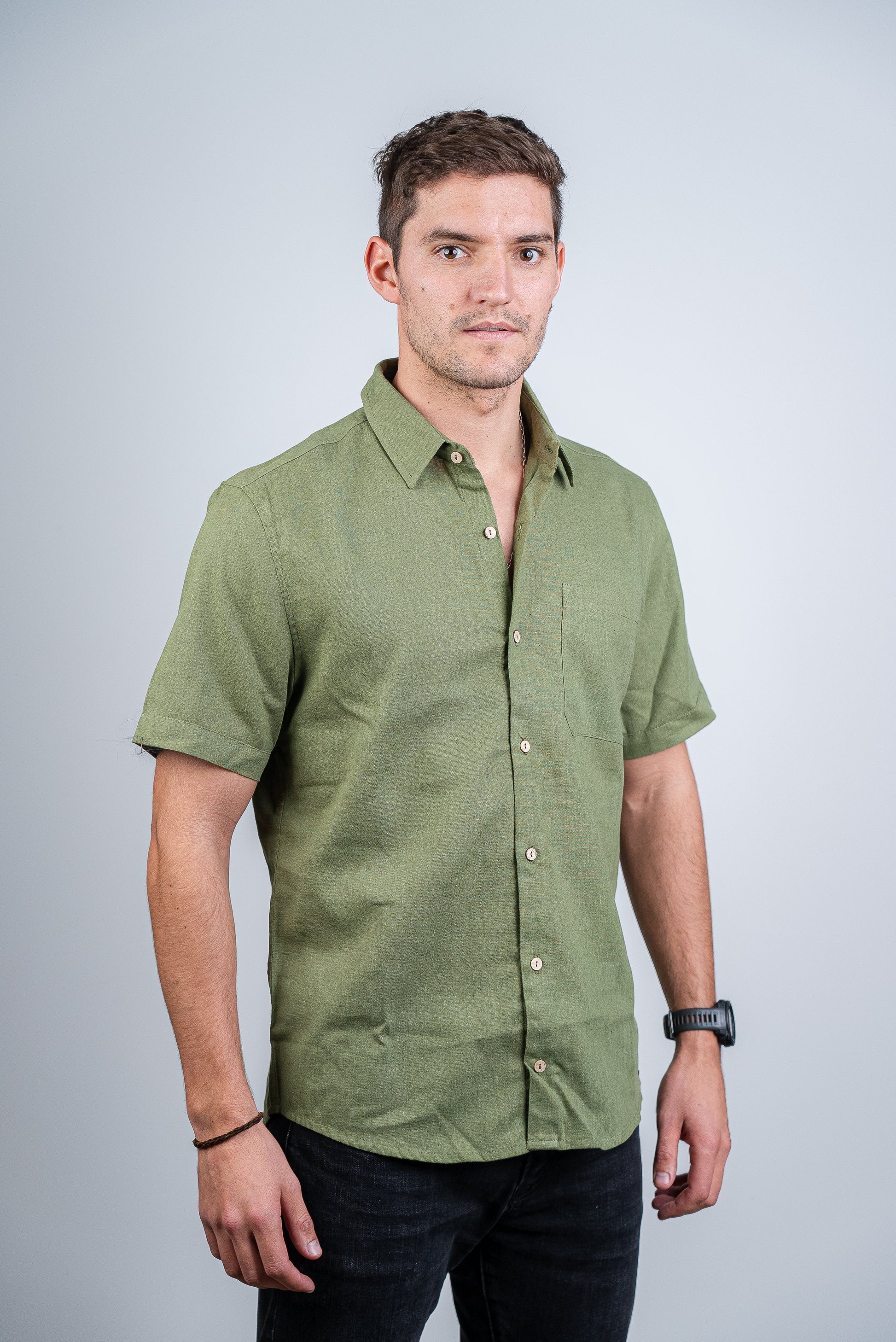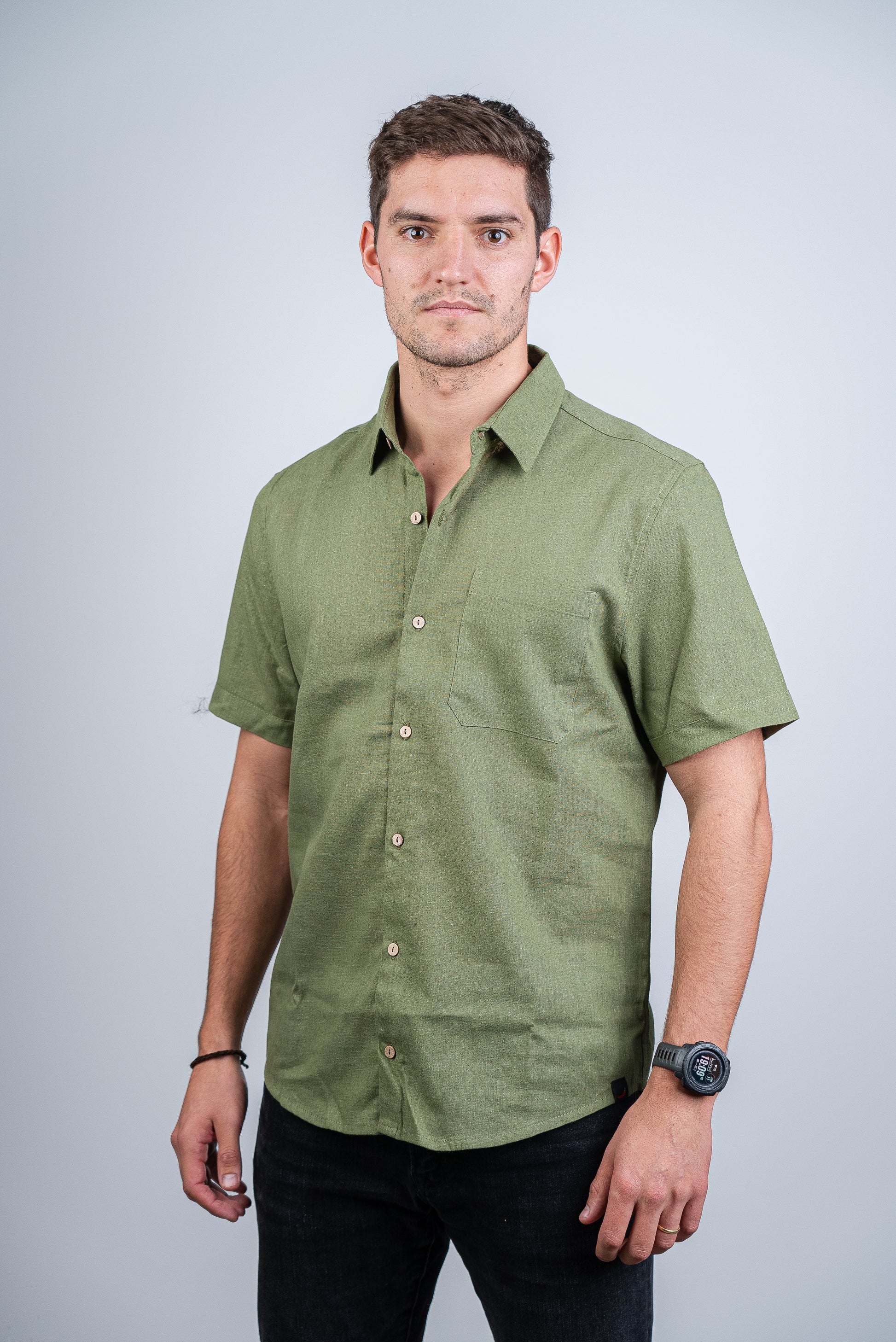 Composición: 60% lino, 40% algodón. Botones de coco.